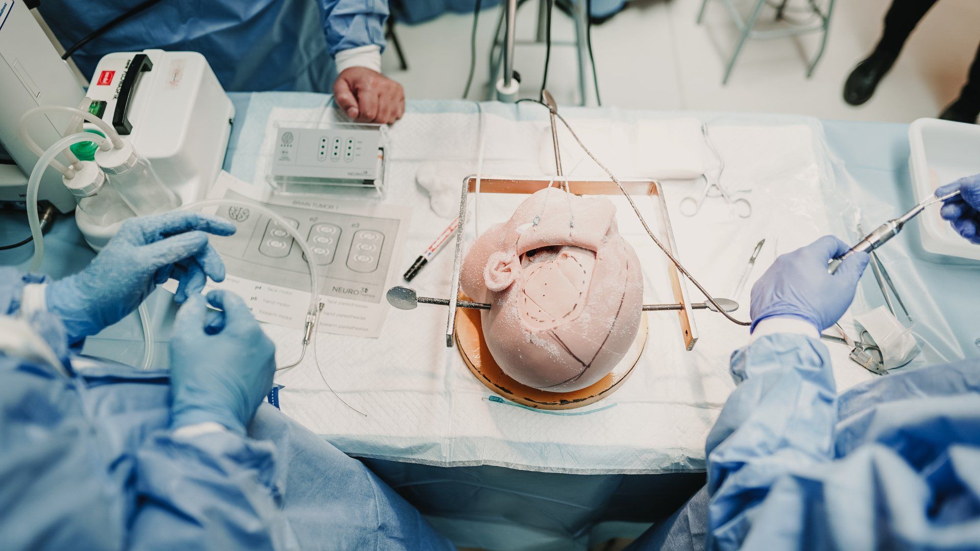 One of our best creations for one of the best courses. An accurately created surgical glioma simulator with electrodes implemented into the flexible brains that allowed to reproduce the most realistic ‘awake surgery’ experience with cortical and subcortical stimulation. Alicante, 2020
