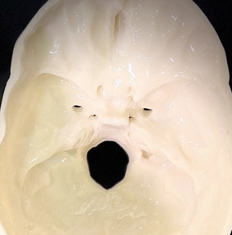 1.1 scaled model made on 2 pieces easily attachable: skull base and calvarium. Made of a real human being multi-slice CT-scan.